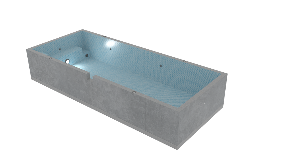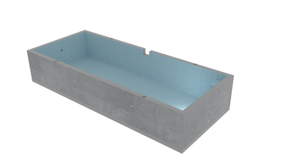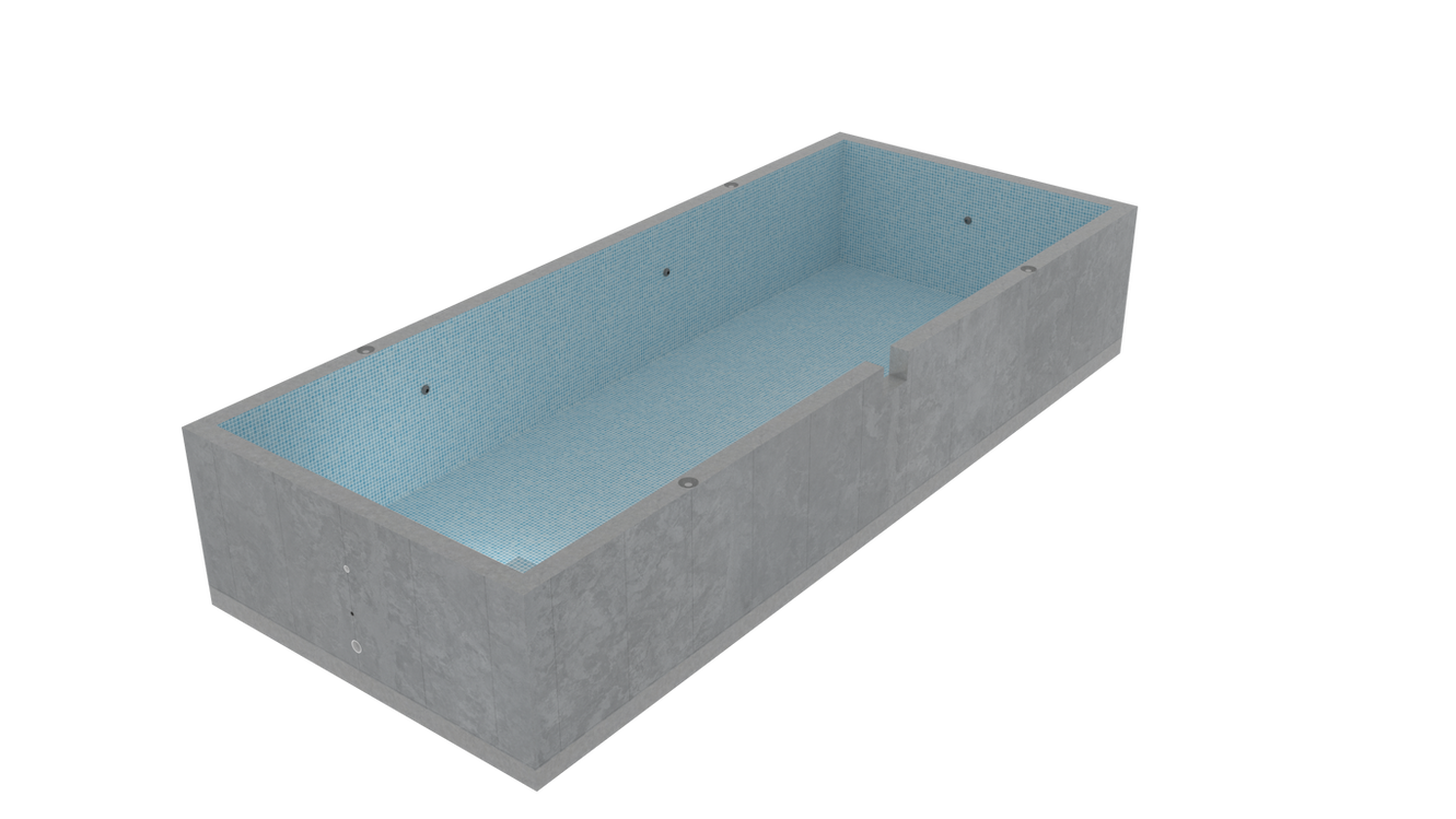 Your pool is precast in our facility with reinforced concrete and full-tile finishes.