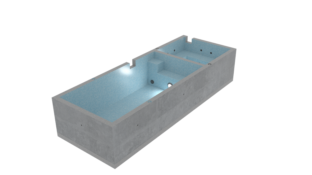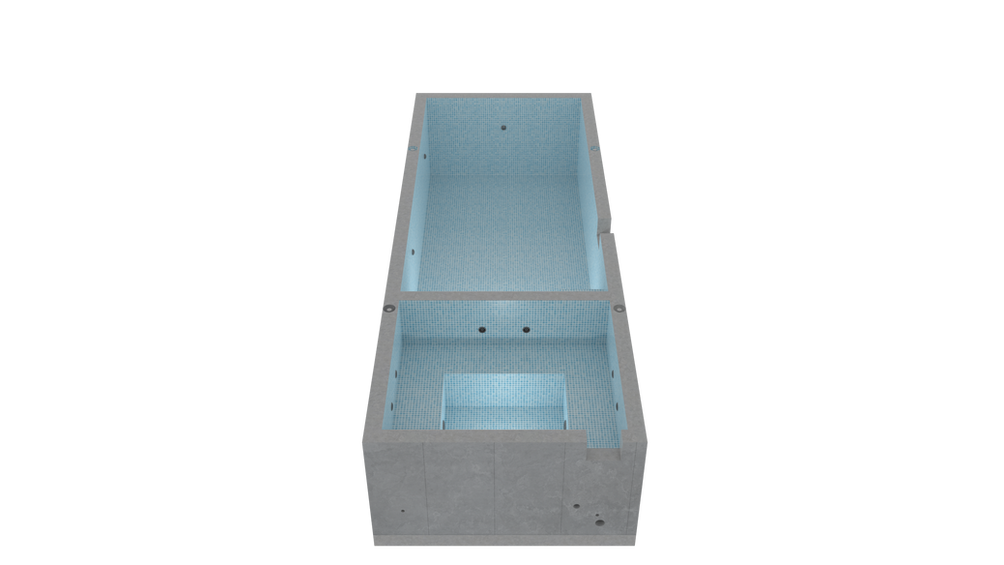 Your pool is precast in our facility with reinforced concrete and full-tile finishes.