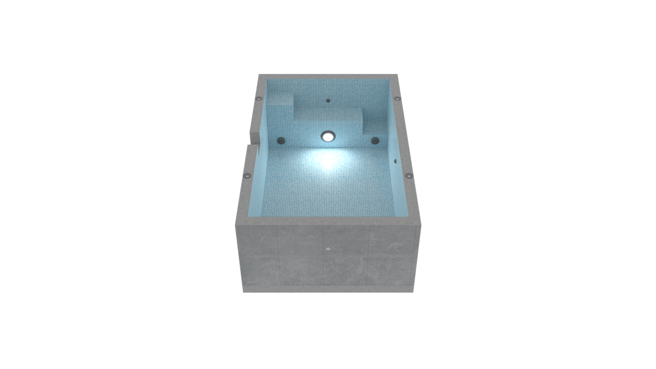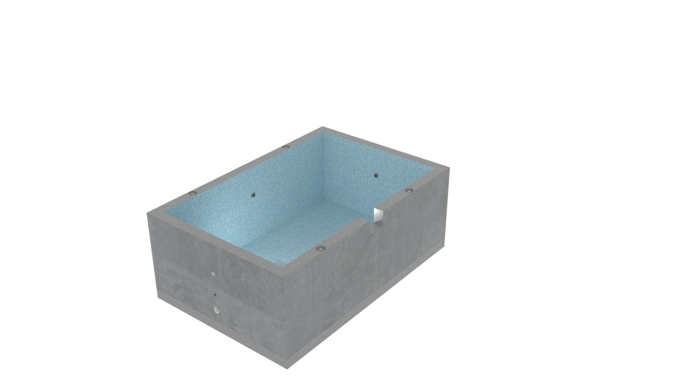Your pool is precast in our facility with reinforced concrete and full-tile finishes.